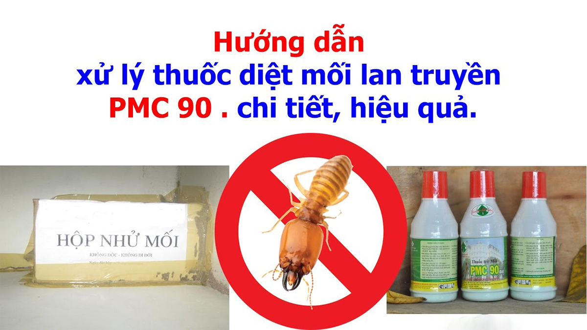 Bước 2: Lựa chọn thuốc diệt mối hợp lý có sức lan truyền tốt từ những công ty uy tín để sử dụng công việc tạo mầm bệnh cho mối. Thời gian đặt hộp nhử từ ngày thứ 12 hoặc 20 ngày tiến hành kiểm tra mối trong hộp mồi đã đặt thấy lượng mối trong hộ nhiều tiến hành phun thuốc lây truyền lên toàn bộ các cá thể mối với liều lượng vừa đủ tránh tình trạng mối chết tại chỗ . Mối thợ sẽ đem mầm bệnh dịch này đi về tổ, trên đường rút về tổ lượng thuốc lan truyền này sẽ rải rác từ hộp mối về đến tổ bằng các ngả đường mối rút về , những cá thể mối không trúng thuốc cũng đi qua khu vực có thuốc bám trực tiếp lên thân mối . Khi mối trúng thuốc bệnh dịch cá thể mối yếu dần và chết bịt tất cả các tuyến đường mối và mối chúa cũng bị chúng thuốc khi mối thợ đem thức ăn về cũng theo lan truyền và chết .
